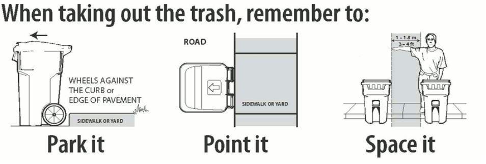 - Whenever possible, Do not place totes near mailboxes, lamp posts, telephone poles or near parked vehicles